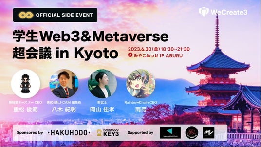 2024年7月6日(土)、豪華なスピーカー陣を迎え、協賛企業、メディアパートナー、コミニティパートナー合計38企業・団体支援のもと、「学生Web3超会議だお in Kyoto」を開催決定!