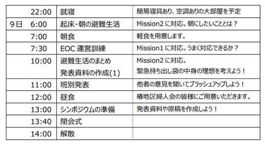 持ち物:1日目の昼食、飲み物、着替え、持ち運びできる小カバン、保険証、避難用緊急持ち出し袋、など