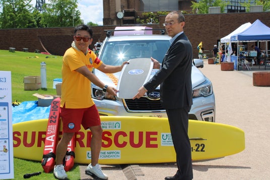 富山県ライフセービング協会(事務局:富山県富山市 代表:宮田真一)は、2024年も北陸スバル自動車株式会社(本社:石川県金沢市 代表取締役:長谷川 謙一)より、SUBARUライフセーバーカーを提供いただきました。2024年6月16日に、富山市の富岩運河環水公園において、SUBARUライフセーバーカーの寄贈式を行いました。