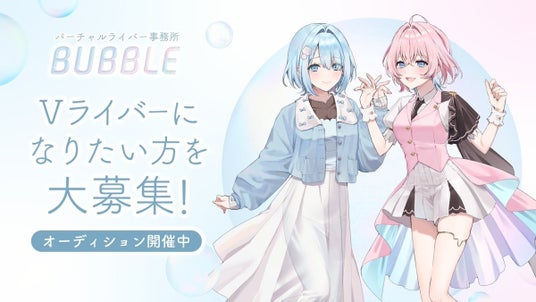 BUBBLEは、新感覚Vtuberアプリ「IRIAM」で活動するVライバーが所属する女性専門のVライバー事務所です。自分自身も知らない自身が隠し持っている魅力や才能をシャボン玉のように弾けさせられるように、BUBBLEは配信者になりたい・新しく何かをやってみたい方の背中を押せるよう、配信サポートを行っています。