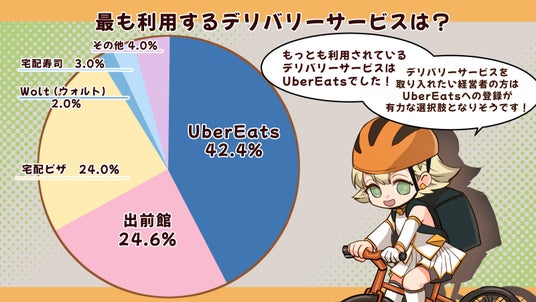 フードデリバリーでは約42%の人がUberEatsを利用している!