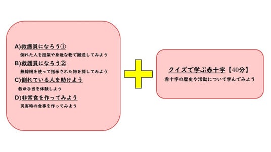 体験【40分】 ※以下のいずれか + クイズで学ぶ赤十字【40分】