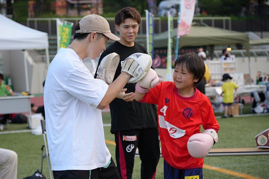 昨夏はボクシングアジア太平洋王者の佐々木尽選手も参加(写真中央)