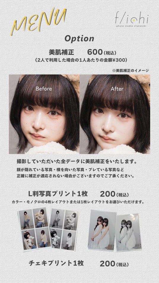 ・美肌補正:600円(2人での利用の場合1人あたり300円)
