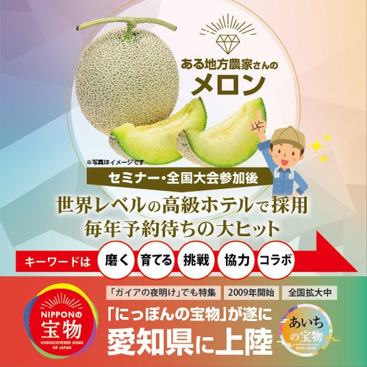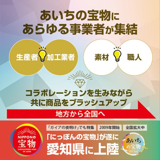 2009年開始。テレビ「ガイアの夜明け」でも2年連続で特集され大反響となり、全国拡大中の「にっぽんの宝物」が遂に愛知に上陸!