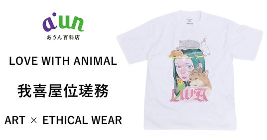 エシカルな暮らしを提案するあうん百科店は、我喜屋位瑳務氏にあうん百科店限定のオリジナルアート「LWA(LOVE WITH ANIMAL)」を描きおろしてもらい、そのアートをプリントしたTシャツとスウェットの2型を発売します。あうん百科店オンラインストアのみでご注文いただけます。