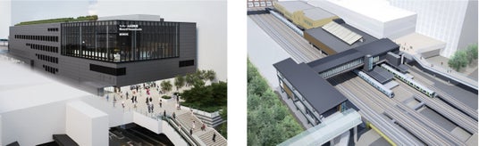 (左)モノレール浜松町駅建替え後 (右)JR浜松町駅改良工事後