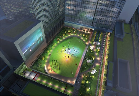 再開発エリア全体で立体的なランドスケープ計画を行い、旧芝離宮恩賜庭園と対をなす庭園を作り出します。