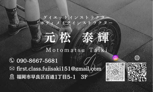 元松代表は、陸上競技(棒高跳び)で12年間の経験を積み、スポーツ学とトレーニング知識をボディメイクへ活かし九州大会で優勝を果たしています。その実績を元にジムを立ち上げました。自身のトレーニング経験を活かし、実際に多くの体を見てきたからこそ提供できる、実践的で効果的な指導を行っています。お客様一人ひとりの健康をサポートすることを使命とし、将来的には大規模なジムを展開することを目指しています。初心者の方でも安心して通える環境を提供し、会員様が継続的に健康を維持できるよう全力でサポートします。