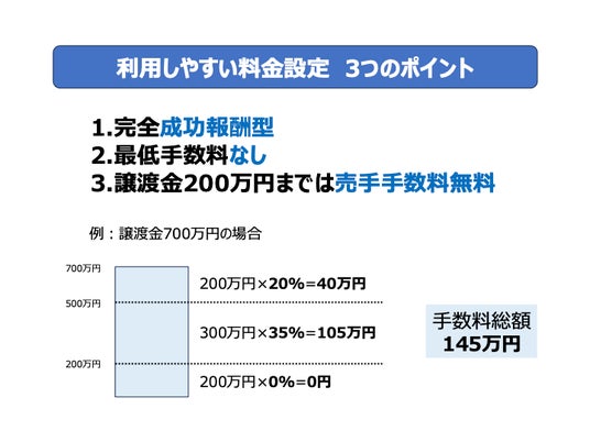 売り手の利用料を抑え、誰でも気軽に相談できる設計に