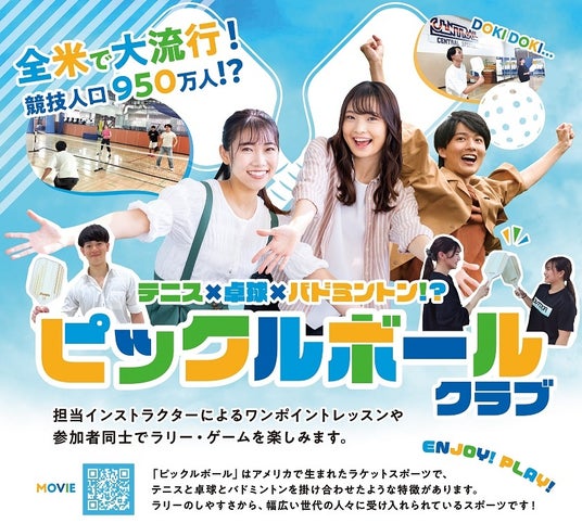 ピックルボールは、テニス・卓球・バドミントンの要素を組み合わせた米国発祥のスポーツで、手軽に始められ、老若男女が楽しめる競技として爆発的な人気を博しています。近年、日本国内でも増加傾向にあるピックルボール愛好家はもちろんのこと、多くの方々にスポーツを楽しむ機会をご提供することを目的として、スポーツクラブ会員のみならず、未会員の方でも参加できる「ピックルボールタイム」を実施することといたしました。2024年8月から9月にかけて、直営スポーツクラブ21店舗で開催し、以降はスポーツクラブのみならず運営を受託している公共施設なども含めて開催店舗を拡大予定です。
