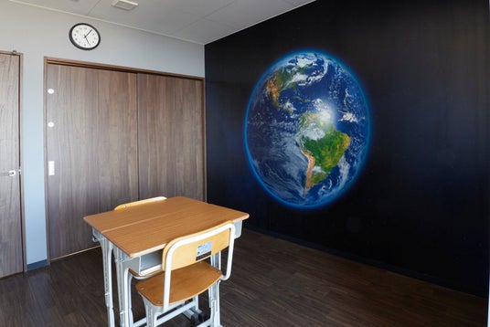 大きな地球の写真を使用した訓練室