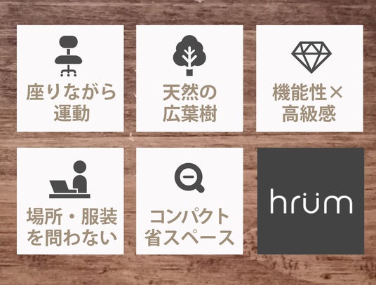 「hrum」は長時間座位行動が多いデスクワーク中心の方や、普段から座りがちな生活を送っている方、また忙しくなかなか運動時間を確保できない方などに、貧乏ゆすりに似た動きで座りながら汗をかかずに楽しく「ながら運動」をサポートしてくれるアクティブフットレストです。