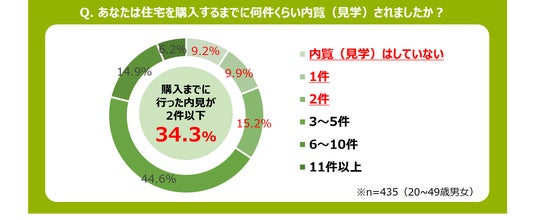 1.住宅の購入にもタイパの波が!?4割弱の人が住宅購入までに行った内見が2件以下という結果に