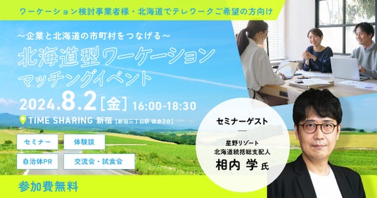 美しい自然と豊かな文化に恵まれた北海道は、ワーケーションに最適な環境を提供します。都会の喧騒から離れ、心身ともにリフレッシュできる北海道でのワーケーションは、創造性を高め、生産性を向上させる絶好の機会です。さらに、異業種交流や地域課題の解決を通じて、新たなビジネスチャンスを探ることができる魅力的な場でもあります。首都圏の企業・個人の皆様に、北海道ならではの魅力を体感していただけるよう、この度企業の皆様と北海道の地域をマッチングするワーケーションイベントを開催いたします。
