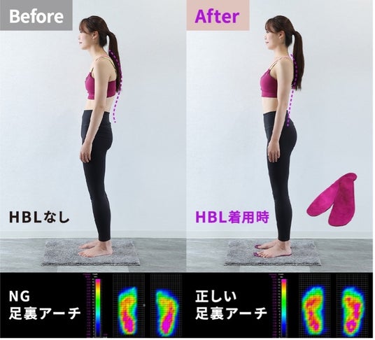「HBLインソール」は、美容家で元ユニバース福岡の須田 新葉 監修のもと開発しており、靴に入れて歩くだけで足裏アーチの本来の機能を引き出し、美しい姿勢を実現します。