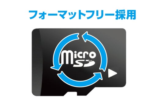 フォーマットフリー機能を搭載し、microSDカードの定期的なメンテナンス作業を削減しました。また、最大128GBのmicroSDカードに対応しています。