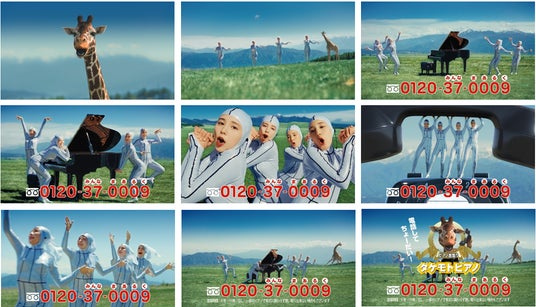 舞台は、これまでのCMとは打って変わって広大な自然の中。山に囲まれた草原に大きなキリンが現れ、ダンサーたちと共に、ダンスでCMを盛り上げます。「タケモトピアノの歌」は、アップテンポの「もっともっと」篇と、スローテンポの「みんなまあるく」篇の2種類。おなじみのメロディにのせた「ダンサー×大自然」という異色の組み合わせがインパクトを与えます。