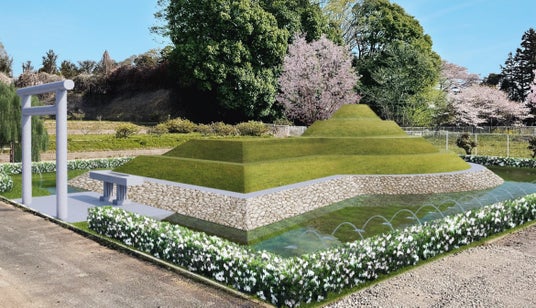 築造予定の古墳墓は、墳丘の長さが15~20メートルの前方後円墳型