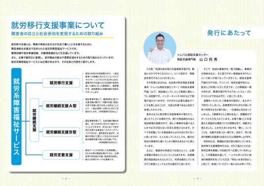 発行・監修に携わりました山口と申します。私は、2017年に息子の知的障害がきっかけで、障害のある方の就労選択の機会を増やしたく、脱サラ起業し、2018年トレパル就労移行支援事業を開所し、これまで運営に携わってきました。