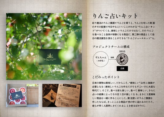 企画:りんごを半分に切った時の種の配置で、その日の運勢を占う「林檎占いセット」を制作・販売