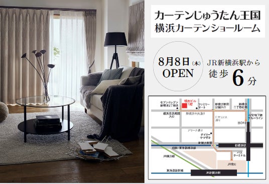 8月8日(木)、カーテンやブラインドなど約6,000点の中からぴったりのスタイルに出会える「カーテン・じゅうたん王国 横浜カーテンショールーム」がオープン!(創業56年の専門店)