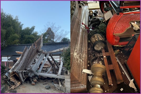 地震直後の状態、貴重な文化財が一瞬で倒壊。