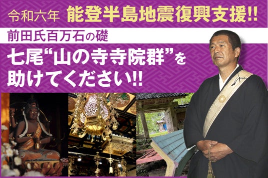 能登半島大地震で被災した文化遺産、山の寺寺院群をクラウドファンディングで復興させるプロジェクト。前田利家、長谷川等伯が深く関わる、貴重な文化遺産を保有する寺院を未来の子供達に残したい。