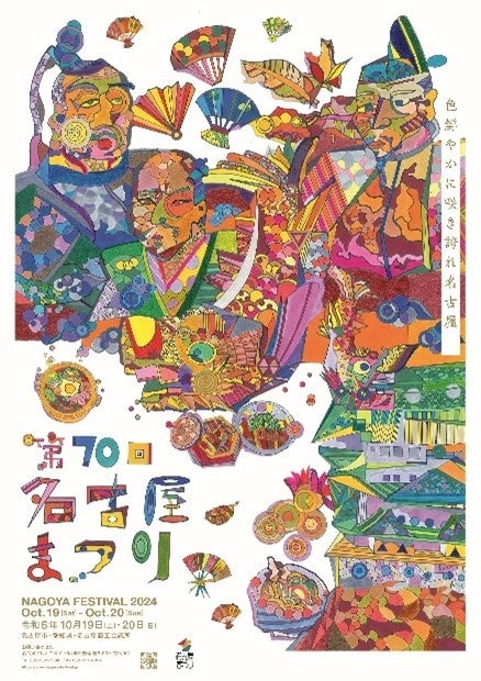 今年の「名古屋まつり」開催70日前にあたる8月10日(土)からは、第70回記念グッズを発売。ポスターデザインに選ばれたアール・ブリュット作家 水上真歩さんによる色鮮やかな作品をあしらった3種類のグッズ(ピンバッジ・サコッシュ・クリアファイル)が、名古屋城売店や観光案内所で発売されました。