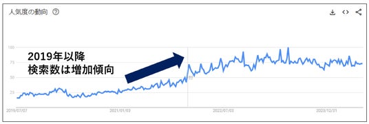 下記グラフ1.はGoogle Trends にて「サウナ」の人気度動向をグラフ化したものです。2021年12月から現在まで高い数値を示し、その人気度が窺えます。