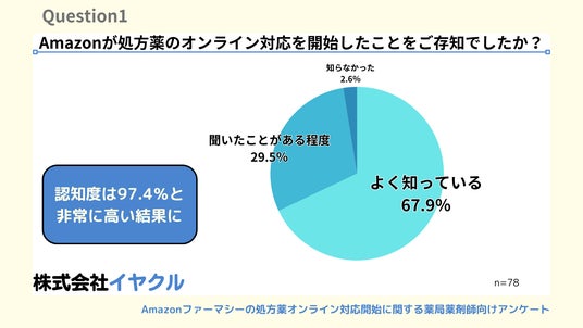 1.Amazonの処方薬オンライン対応に関する認知度は97.4%と、非常に高い数値を示しています。