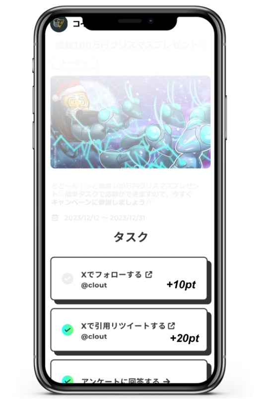 cloutは誰でも簡単にSNS上でキャンペーンを実行でき、投稿の拡散とフォロワーを効率良く増やせるツールとして2024年4月16日にβ版をリリースしました。リリース後わずか3ヶ月でX(旧Twitter)のフォロワーが3万人を超え、サービスサイトの会員は2万人を突破しています。