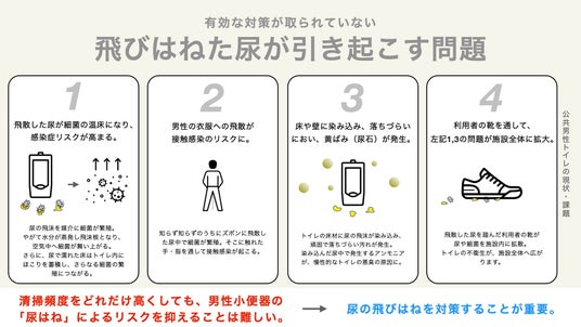 男性トイレのニオイと汚れの原因は「尿の飛びはね」だった