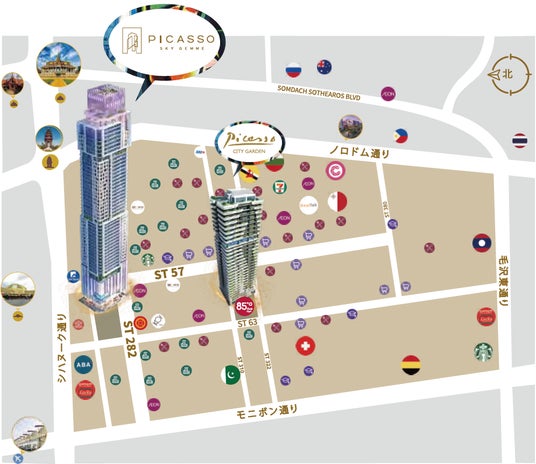 「Picasso Sky Gemme(Picasso2)」は、カンボジア・プノンペンの中心地に位置する52階建ての高級コンドミニアムプロジェクトで、2028年に完成予定です。このプロジェクトは、総計約276ユニットを提供し、1~4ベッドルームタイプおよびペントハウスを含みます。各ユニットはストラタタイトルのフリーホールドハードタイトルを付与され、特徴的な3.3~3.6メートルの天井高を持っています。