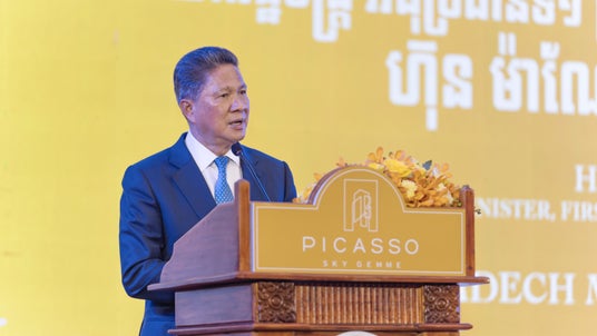 カンボジア副首相スン・チャントール閣下が、「Picasso Sky Gemme」の公式発表会でスピーチを行う様子。