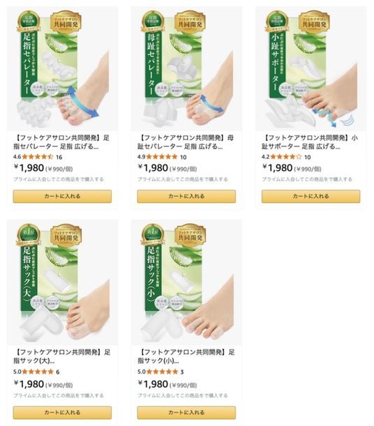 本商品は、ドイツ式フットケアサロン「GREEN GREEN」のオーナーである橋口みどり氏との共同開発により誕生しました。中でも「全指タイプ」「母趾タイプ」「小趾タイプ」の3種は一般医療機器としての届出されており、厳しい品質基準をクリアした安全性の高い商品です。
