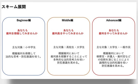 究極目標は、すべての市民が18歳になったとき、一度は模擬裁判を体験し、犯罪の原因や刑罰の制度についての基本知識を身につけている社会の実現です。