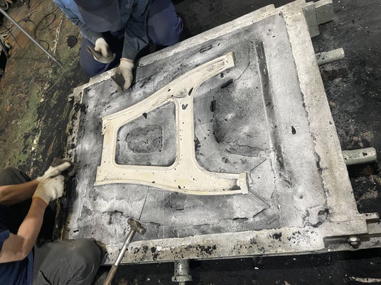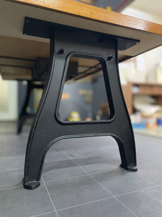 そこで、東亜成型が自動車金型で培ってきた鋳造・塗装技術をもって、天板を支えるアルミ鋳造のテーブル脚を開発しました。