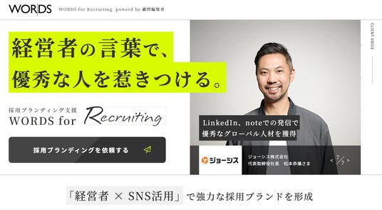 株式会社WORDS(東京都港区)は2024年9月3日、経営者の言葉を活用した採用ブランディング支援サービス「WORDS for Recruiting」の提供を開始しました。