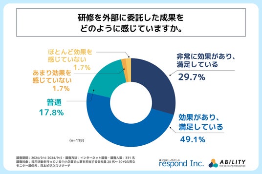 内定者研修を外部に委託している中小企業の約8割が研修の成果に満足している