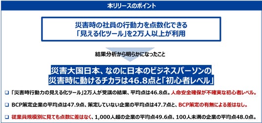 ■日本企業の「災害時に動けるチカラ」の平均は46.8点 災害時に人命安全確保すら危うい状況