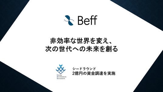 Beff株式会社は、株式会社環境エネルギー投資から2億円の資金調達を実施したことをお知らせします。