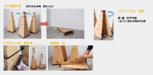 サスティナブルなウッドパイロン・KOLMIO(コルミオ)は、脱プラスチックを進めるだけの商品ではなく、各地のブランド材を活用して原産地域で生産する事で、輸送コストの削減、地域材の利用を促進していきます。また地域材の特徴を活かした木の質感や木の良さを伝える木育アイテムとして、各地域の自治体や企業、商業施設、観光地等の需要も見込める商品と考えています。
