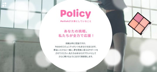サイト名「Polish」には「自分を磨く、スキルを磨く」という思いを込めました。インフルエンサーが自分らしさを最大限に発揮しつつも常に自己研鑽を行い、また弊社と並走することでより高い専門性を発揮することを目指しています。これにより、広告主様にはこれまでにない信頼感と安心感、成果につながるマーケティングを提供できると自負しております。