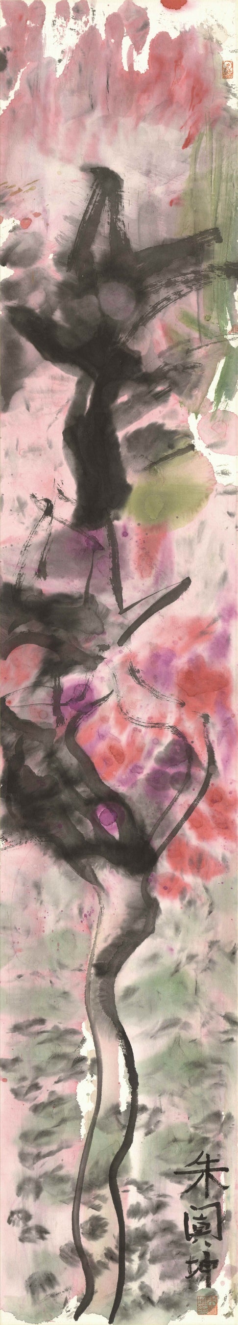 国画『火樹琪花』(高さ134.5cm、幅23.5cm)朱闐坤 6歳作