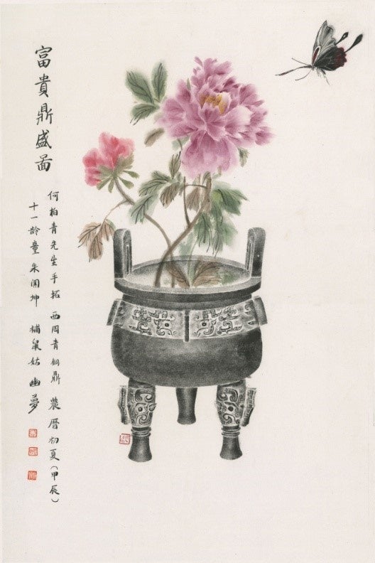 国画『富貴鼎盛圖』(高さ65.5cm、幅44cm)朱闐坤 11歳作