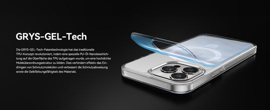 CASEKOOのGRYS-GEL-Tech特許技術は、TPU表面に特殊なPUオイルナノコーティングを施し、高密度の分子配列構造を形成します。この構造は、汚れ分子の浸透と他の物質の侵入を阻止し、真の物理的バリアを提供します。これにより、TPU材料の耐汚染性と黄変耐性が向上し、使用寿命が延長されます。