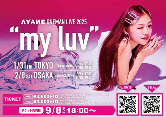 AYANE ONEMAN LIVE 2025 “my luv” <東京、大阪>開催決定!!