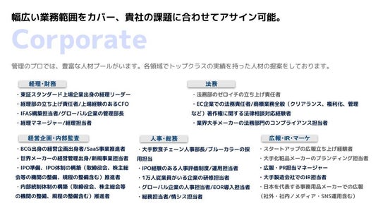コーポレート部門の即戦力を提供する「管理のプロ」が正式にサービスを開始。事前登録者数100名を突破!