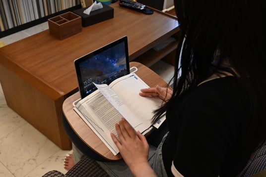タブレットを見ながらノートを